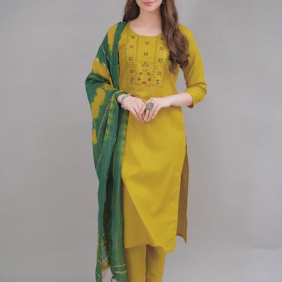 Women Cotton Blend heavy embroidery Kurta With Pant And Dupata Set SG-Noori