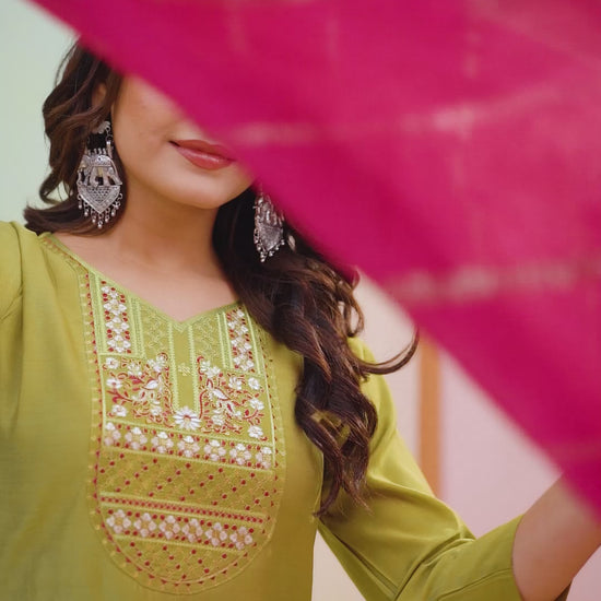 Women Embroidered Silk Kurta With Pant And Dupata Set SG-Pavitra