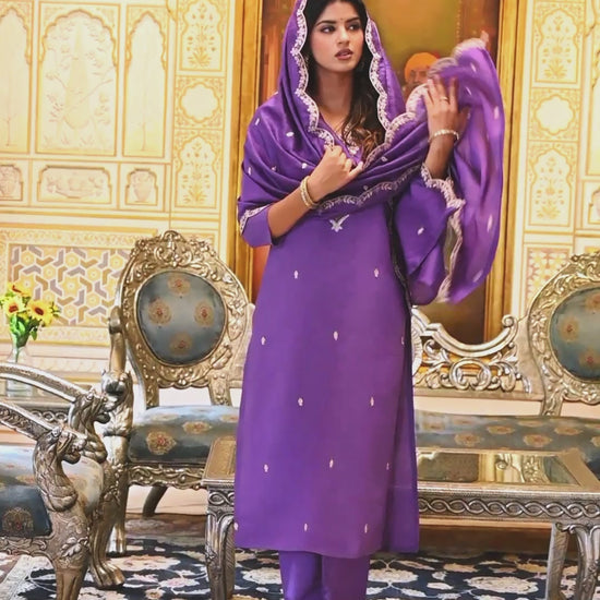 Women's Embroidered Chanderi Kurti With Pant & Dupatta Set D106